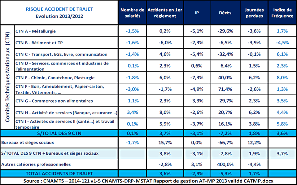 (Source : CNAMTS – Direction des risques professionnels - Données issues de la base annuelle nationale 2013 de la triennale 2011-2012-2013 SGE TAPR).